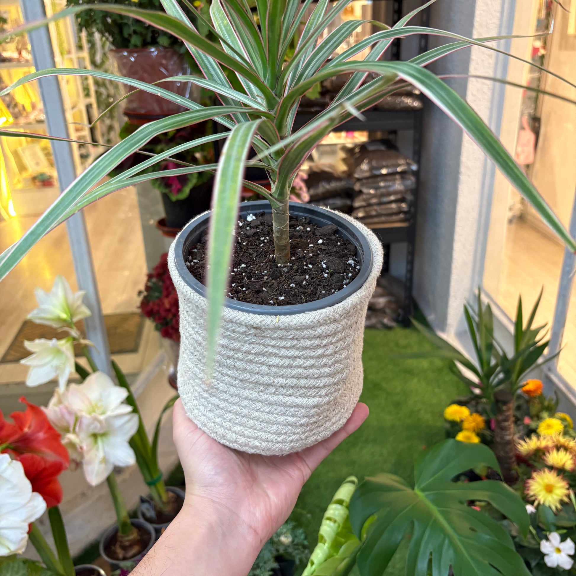 Este canasto tejido en hilo de algodón sin blanquear destaca por su textura suave y su apariencia natural. Su diseño atemporal lo convierte en el complemento perfecto para usar como porta maceta, aportando calidez y estilo a cualquier rincón 🌾🧺