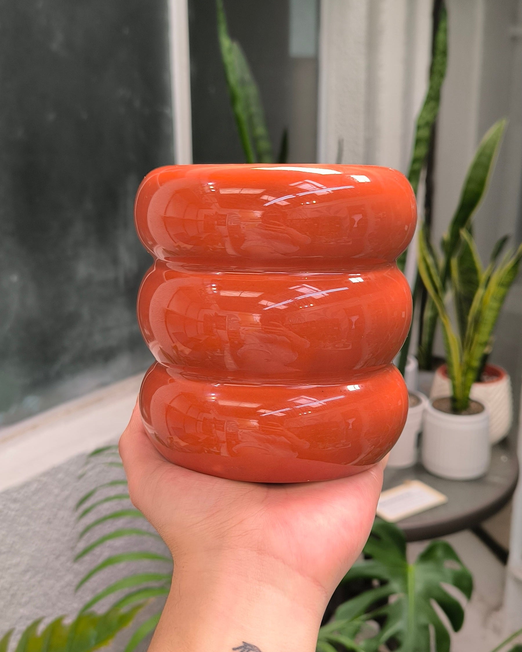 La Maceta de cerámica ondulada es un accesorio moderno y llamativo que destaca por su diseño en forma de ondas apiladas y su acabado brillante. Disponible en dos colores vibrantes y versátiles: gris claro y naranja, es perfecta para quienes buscan una pieza decorativa única que aporte estilo y personalidad a sus espacios.
