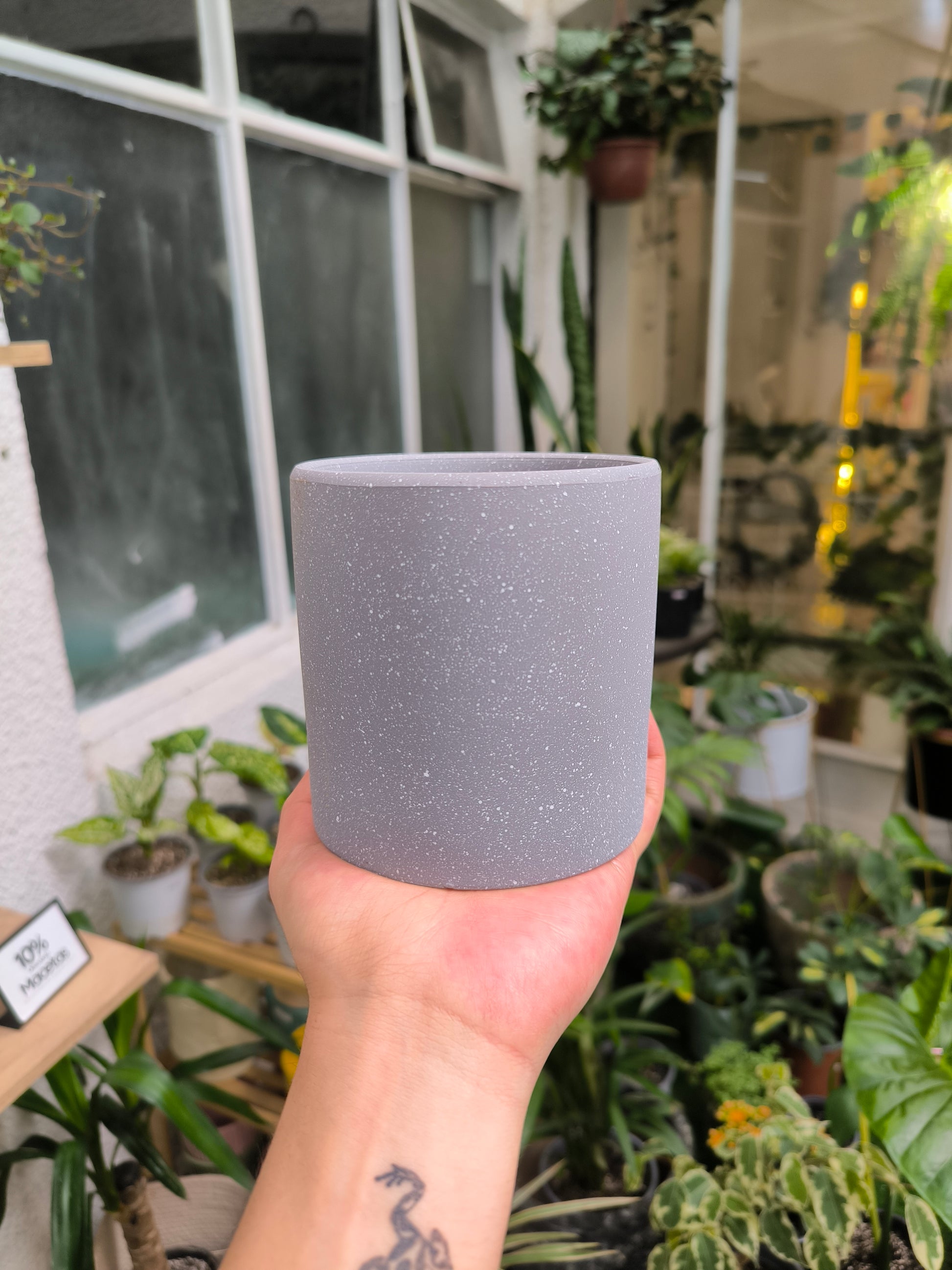 Es una alternativa versátil para rincones decorativos, repisas, muebles y espacios interiores con plantas.