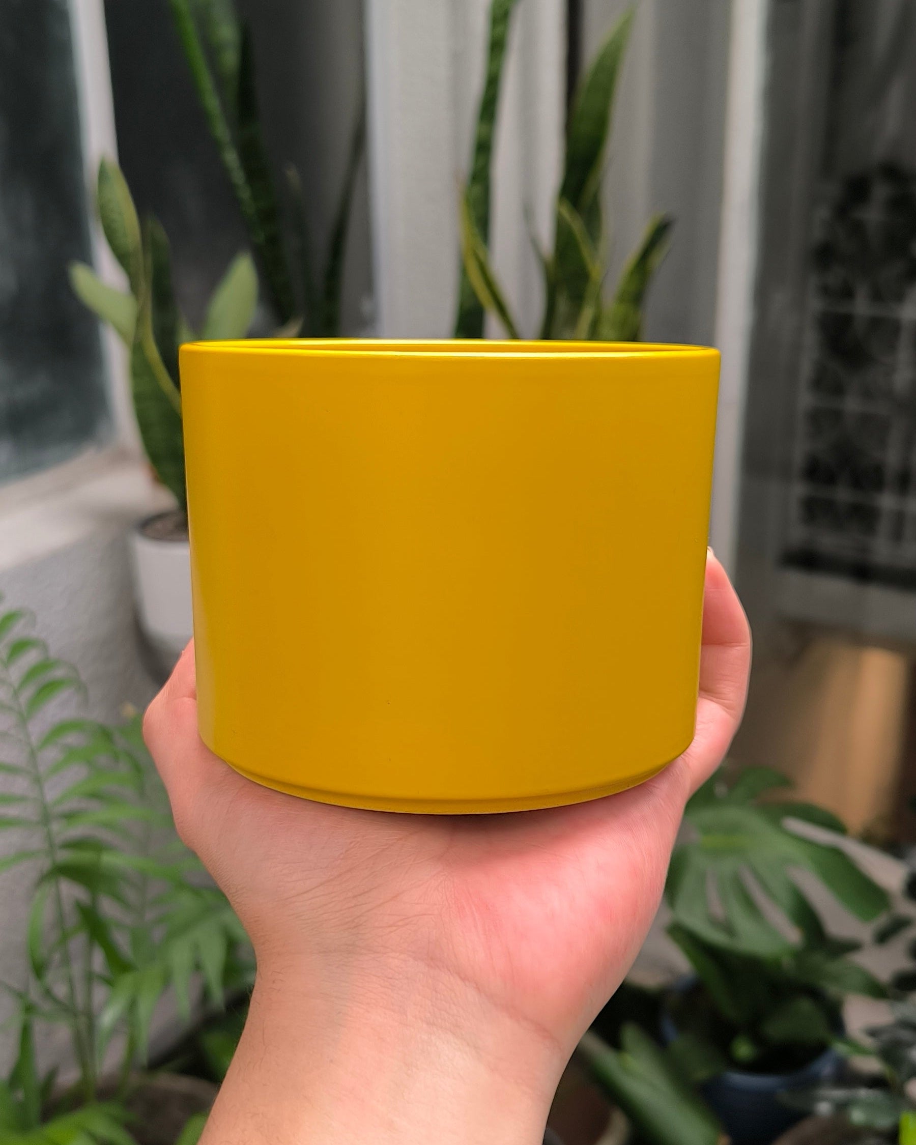 La Maceta de cerámica amarilla lisa es un accesorio decorativo de diseño minimalista y moderno, ideal para quienes buscan dar un toque de color alegre y luminoso a sus espacios. Su acabado liso y mate en un intenso tono amarillo la convierte en una pieza versátil que resalta tanto en interiores como en terrazas.