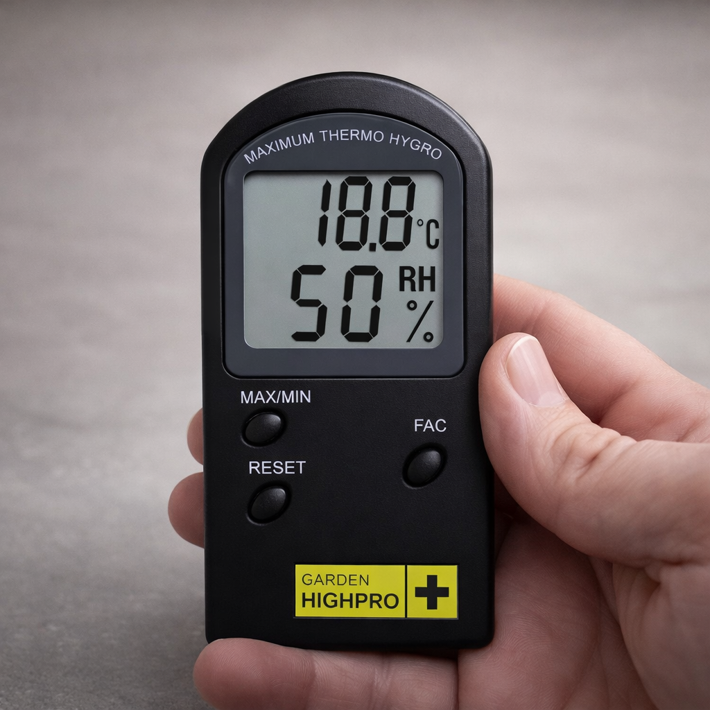 El Termohigrómetro Básico permite medir temperatura y humedad para ayudarte a monitorear el entorno de tus plantas de forma simple.